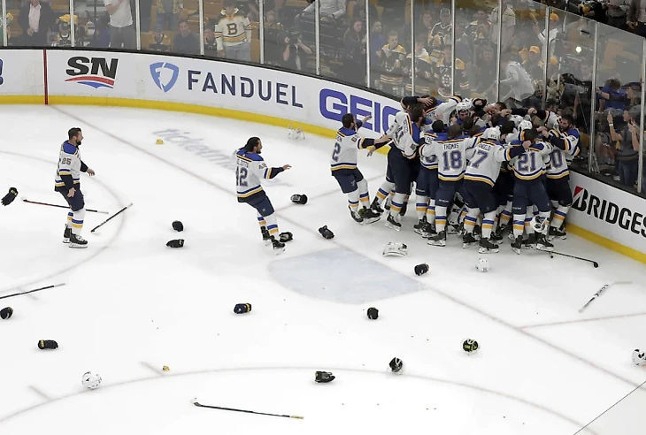 «Сент-Луис» впервые за 52 года выиграл кубок Стэнли и подарил нам настоящую сказку, ведь всего за пять месяцев до этого команда находилась на последнем месте в таблице регулярного чемпионата.