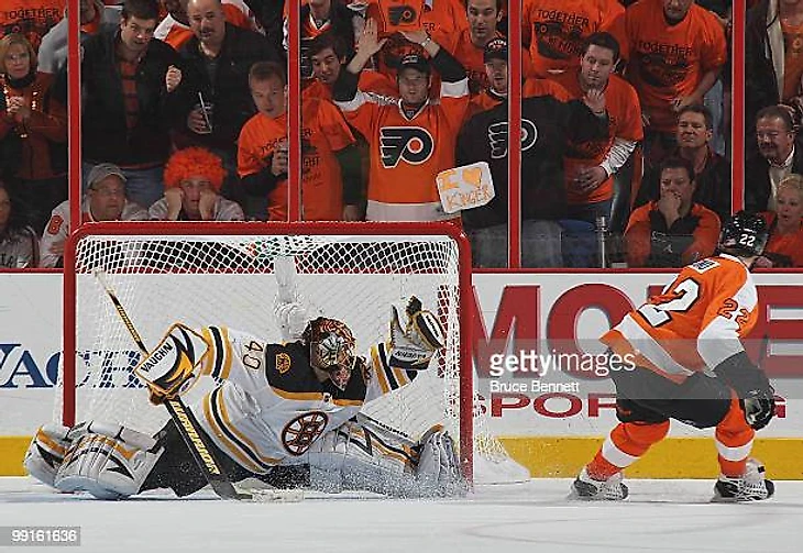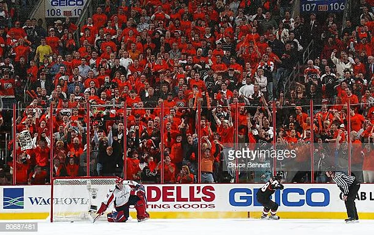 Наибольшее количество буллитов в одном розыгрыше плэйофф было исполнено в 2008 - 6! Но свою попытку реализовал только Майк Ричардс, пробив Кристобаля Юэ в 3 матчей серии 1 раунда с Вашингтоном.