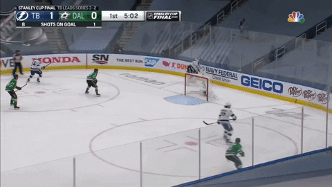 Глобально «Тампа» уже забрала себе шайбу и душила оборону «Далласа», чередуя позиционные атаки и атаки с ходу.