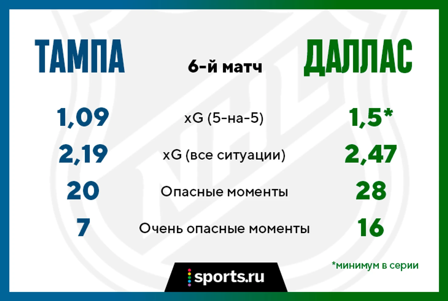 Это была вынужденная штука: к шестой игре финала «Тампа» решила все свои промежуточные и технические задачи. Они забивали каждый матч столько, сколько было нужно. Они выжгли спецбригады «Далласа» – подробнее об этом почитайте у Родиона. Они, среди прочего, закрыли Гурьянова – у Дениса очень хороший бросок в касание, над которым он отдельно и много работал: в финале ему толком не дали выстрелить ни разу.