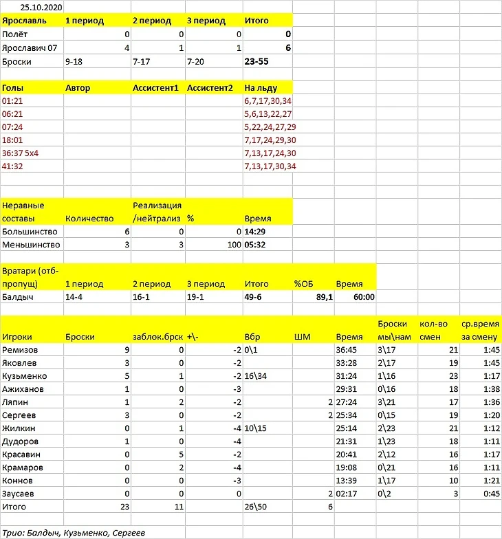 Вроде бы радуют 23 броска в створ. Однако ж при ближайшем рассмотрении всё станет не так однозначно – в равных составах мы потревожили чужого вратаря всего 4 раза!!! За 60 минут!!! Да, в большинстве команда преображалась, заметно, что компонент разучиваем. НО 4 РАЗА!! Из них вторая пятёрка всего один и то в ситуации, когда не целиком была на льду. Ну и 55 в наши, это ещё без двух перекладин и штанги….