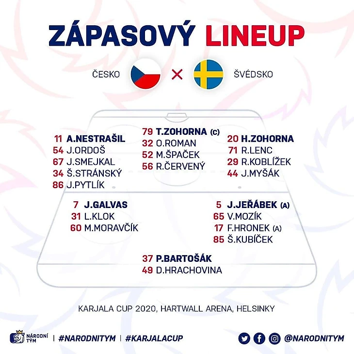 14:50 Чехи назвали стартовые состав на матч против Швеции. Изучаем тоже – нашей молодежке с ними в воскресенье играть.