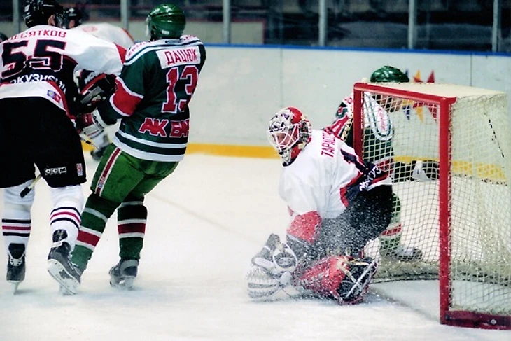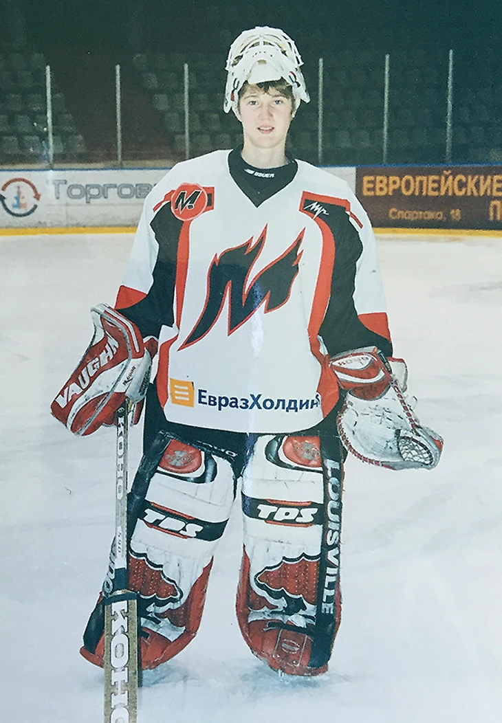 Только шикарная игра Вадима Тарасова — это не единственное, что меня впечатлило в нем. К этому еще добавился его красивый и уникальный внешний вид на льду — стильные щитки, блин, ловушка. Шлем с черепом, от которого я был в восторге. Мечтал о похожей форме, но у родителей не было денег на такое, конечно же. Хорошо, что в «Металлурге» выдавали бесплатную форму, так что у меня появилась возможность играть на воротах. Естественно, она была поношенная, поэтому все досталось дырявым, рвущимся, ну и не таким красивым, как в моих фантазиях. Только это все равно не помешало мне кайфовать от игры. Кстати, вратарь из меня получился такой же дырявый.