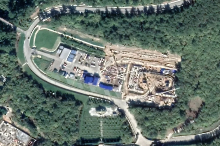 Расследование утверждает, что это здание – полноценный хоккейный дворец. В качестве доказательств указаны старые спутниковые снимки этой территории, когда стройка еще была в процессе.