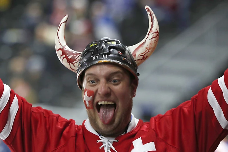 В самом конце первого периода белорусы открывают счет - Константин Кольцов постарался. Гол! Швейцарцы вскакивают со своих мест и орут это слово, одинаково звучащее на всех языках мира. Они смеются, прыгают, обнимаются, размахивают швейцарскими флагами. Похоже, им самим, взрослым мужикам, очень нравится игра, которую они только что придумали. И это на самом деле выглядит настолько смешно, что шведские болельщики, до того стоявшие с каменными лицами, тоже вдруг начинают улыбаться, наблюдая за творящейся у них на глазах вакханалией.