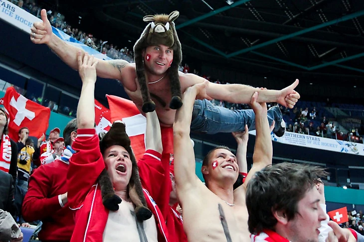 Настроение у "сыров" замечательное: швейцарская сборная только что грохнула чехов, вчера по буллитам одолела Канаду. Они смеются, орут, веселятся по полной… И самое забавное - на этом насквозь шведском пароме швейцарцы в открытую болеют именно за белорусов. Почему - черт его знает... Скорее всего, просто их симпатии на стороне более слабой команды. У братьев-славян, кстати, получается абсолютно все – шайба держится, идут опасные броски… На каждое удачное действие белорусской хоккейной дружины швейцарцы реагируют очень живо: хлопают, оживленно комментируют... А вокруг них – напряженная толпа скандинавов, оторопевших и от подобной наглости, и от того, что их любимцы в начале игры совершенно непохожи на себя.