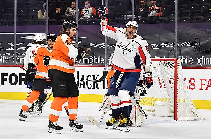 Овечкин снова забил «Филадельфии» – соперник сам отдал ему шайбу под бросок. До Эспозито – два гола