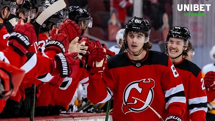 "Нью-Джерси Дэвилз"-"Питсбург Пингвинз" 3:2.Джек Хьюз набрал 2 очка (1+1),Скотт Уэджвуд отразил 40 бросков.