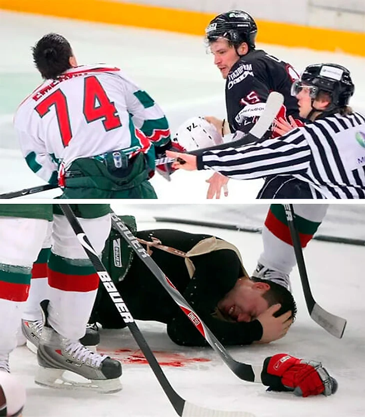 В четвертой игре казанцы в гостях просто разобрали соперника – 11:1. Разозлившийся Александр Свитов сцепился с Алексеем Емелиным – по итогам драки игроку «Ак Барса» пришлось вставлять в лицо 4 титановых пластины.