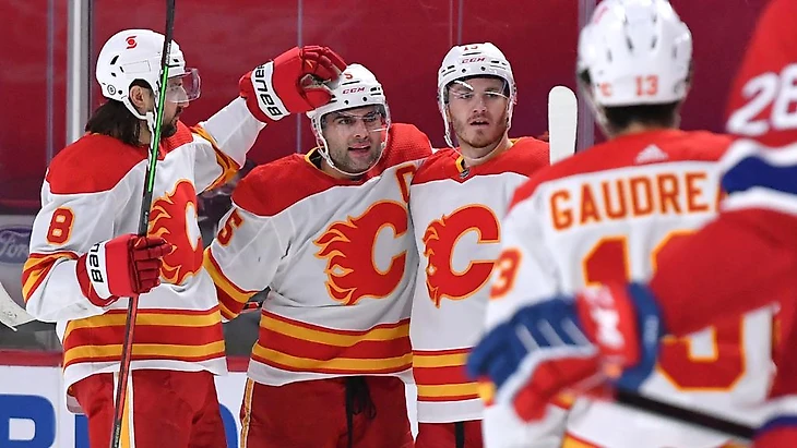 "Монреаль Канадиенс"-"Калгари Флэймз" 1:4.Марк Джиордано набрал 2 очка (1+1),Кристофер Танев отдал 2 результативные передачи,Якоб Маркстрём отразил 26 бросков."Огоньки" выиграли 3 игру подряд.