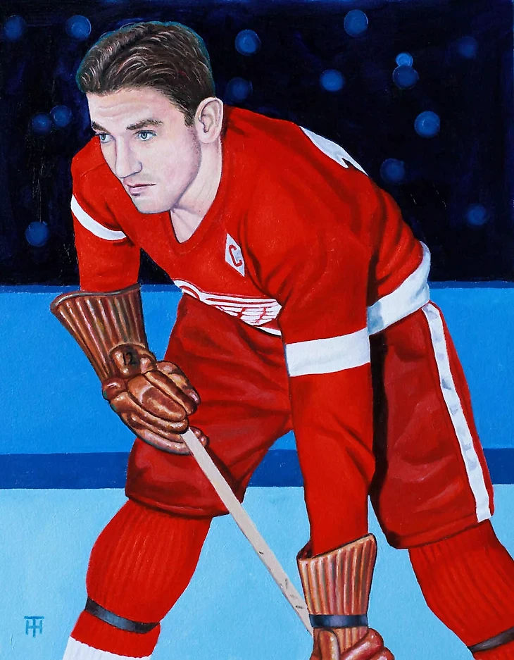 Если я начну рассказывать о Гордоне Хоу, то не останется ни времени ни места, чтобы закончить рассказ о "Ред Уингз". Но не сказать ничего, рассказывая о "Крыльях" - абсурд. Про его рекорды, про его физическую мощь, про его несметные травмы, про его долголетие в "большом хоккее" прочитаете... Да однажды у меня и прочитаете, но "потом". Сейчас же расскажу, что Горди Хоу начинал свою карьеру в "Детройте" под №17, но когда, после трейда Роя Конахера в "Чикаго", высвободилась "девятка", смекалистый Горди попросил этот номер себе, так как сообразил, что №9 даёт право на выездах путешествовать на нижней полке спального вагона. Горди Хоу не чурался драк. Но "Хет-трик Горди Хоу" - это легенда. У самого "Мистера Хоккея" за всю карьеру было всего-лишь 2 подобных хет-трика. Хоу мог не оказаться в "Детройте" из-за ... ошибки Джека Адамса. Он не правильно оформил права "Ред Уингз" на Хоу, когда Горди было ещё 17 лет. В Виндзоре проходил тренировочный сбор для юных дарований. Виндзор - это через дорогу, если Вы помните. На этот сбор подъехал Генеральный менеджер "Торонто Мэйпл Ливз" Фрэнк Селке. Он и указал, по-дружески, Джеку Адамсу на ошибку в документах, и Адамс документы переделал. А говорите, в большом бизнесе не бывает дружеских отношений. Правда, поговаривают, что Селке на тот момент был в серьёзных "контрах" со своим боссом - владельцем "Торонто" Конном Смайтом, поэтому и не воспользовался случаем умыкнуть у "Детройта" Горди Хоу... Да мало ли, что говорят.