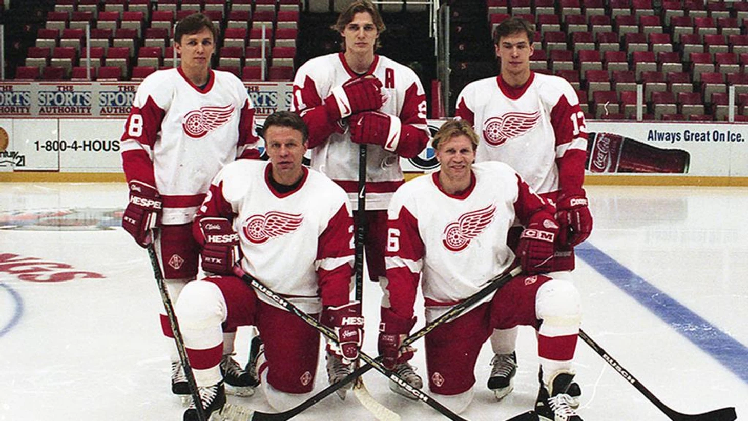 Пара слов о Владимире Константинове. В хоккей начинал играть в Мурманске, откуда перебрался в спорт.школу ЦСКА. Карьеру во взрослом хоккее начинал... нападающим. В качестве форварда выиграл золотые медали на Молодёжном Чемпионате Мира 1985-го года и на взрослом - 1986-го. На следующем МЧМ-87 был участником знаменитой "битвы при Пляштянах", когда в рукопашную, стенка-на-стенку сошлась молодёжь СССР и Канады. В той драке "за сборную СССР" участвовали и Александр Могильный и Сергей Фёдоров. И Могильный, и Константинов, и Фёдоров через некоторое время "сбегут" в НХЛ. Причём, в отличие от своих товарищей, Владимиру в "шпионских страстях" с побегом будут помогать проплаченные американцами советские партийные чиновники. Константинов быстро завоевал место как в основном составе "Ред Уингз", так и в сердцах фанатов команды своим бесстрашным поведением на льду. Он был лидером обороны "Детройта". Через несколько дней после триумфа 1997-го года произошла автокатастрофа, в результате которой Владимир Константинов навсегда оказался прикован к инвалидному креслу.