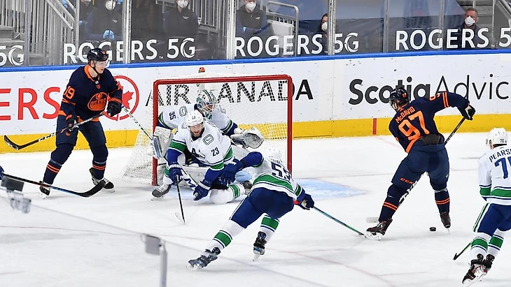 "Эдмонтон Ойлерз"-"Ванкувер Кэнакс" 1:4.Гости в последнем периоде забросили 3 шайбы.Мэттью Хаймор забросил 2 шайбы,Джей-Ти Миллер отдал 2 результативные передачи,Тэтчер Демко отразил 31 бросок.