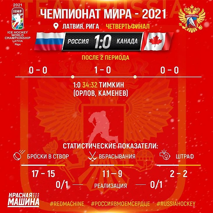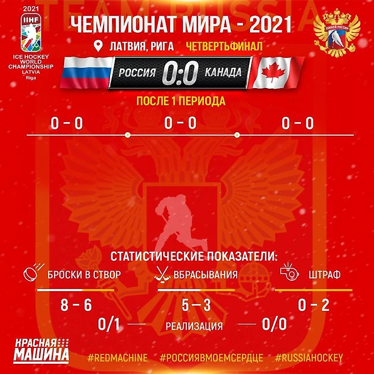 16:50 Привет всем, кто с нетерпением весь групповой этап ЧМ ждал старта плей-офф, и всем тем, кто не понимает, о каком групповом этапе речь – и просто пришел на вывеску Россия – Канада. Да, сегодня в Латвии дают Эль-Класико мирового хоккея – противостояние интересное на любом возрастном уровне и с любыми составами!