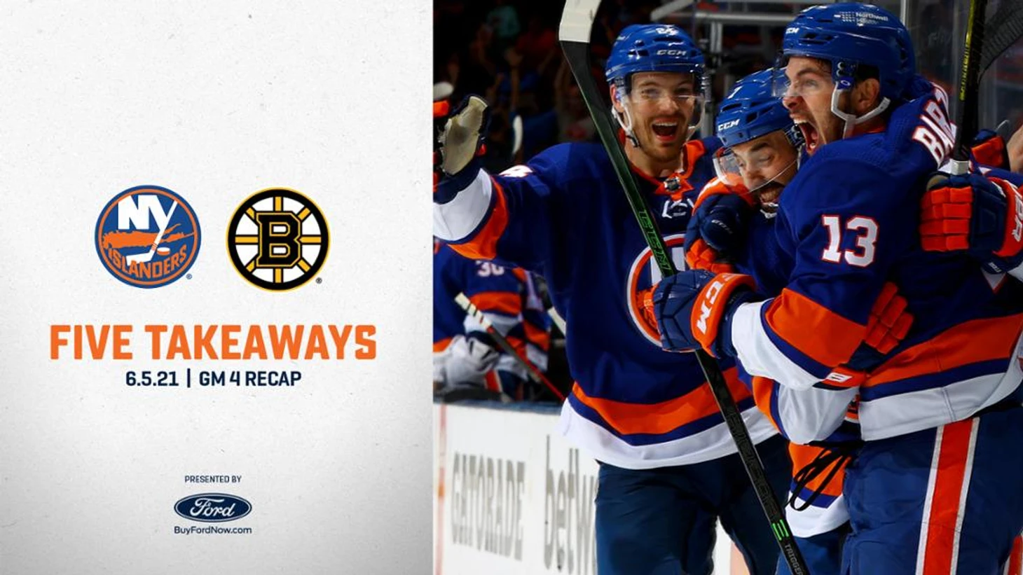 "Нью-Йорк Айлендерс"-"Бостон Брюинз" 2:1.Мэтью Барзал набрал 2 очка (1+1),Семён Варламов отразил 28 бросков.В первом периоде Скотт Мэйфилд и Мэтт Мартин подрались с Тэйлором Холом и Джастином Тинорди."Островитяне" сравняли счёт в серии 2-2.