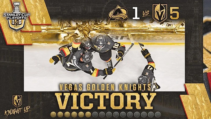 "Вегас Голден Найтс"-"Колрадо Эвеланш" 5:1.Джонатан Маршессо забросил 3 шайбы,Вилльям Карлссон отдал 3 результативные передачи,Марк-Андре Флери отразил 17 бросков."Рыцари" сравняли счёт в серии 2-2.