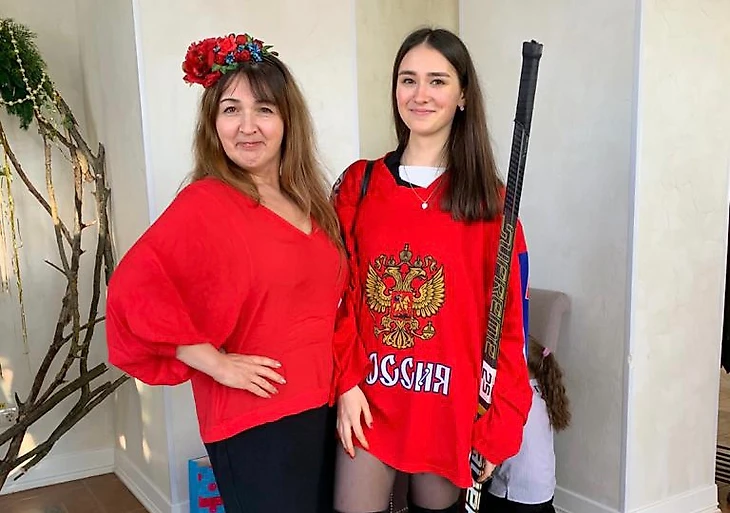 На эту мысль меня натолкнула надпись на джерси. Его мы попросили у одной из болельщиц "Ростова" (мама Аня, привет!). Помимо страны, на свитере красовалась фамилия Овечкина. И вот: я, вроде, с символикой страны, но одновременно и хоккеист) Дело оставалось за клюшкой.