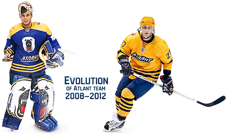 Сейчас поясню на примере «Атланта». В самом начале своей жизни, в далёком 2008 году, команда выступала в форме ярко-синего и жёлтого цветов; на груди был алабай, под ним невнятный леттеринг (за который мне очень стыдно до сих пор), на плечах — контрастные вставки. В следующем году эти вставки исчезли, алабай и шрифтовой логотип в графическом плане серьёзно подтянулись. В 2010 году синий стал тёмным и благородным, алабай исчез, появились первые в КХЛ наплечный логотип и фирменные цифры. В нынешнем сезоне они превратились уже в целый шрифт Atlas X-Sport. Сама форма стала более «докрученной» — например, номера игроков на шлемах также набраны фиршрифтом.