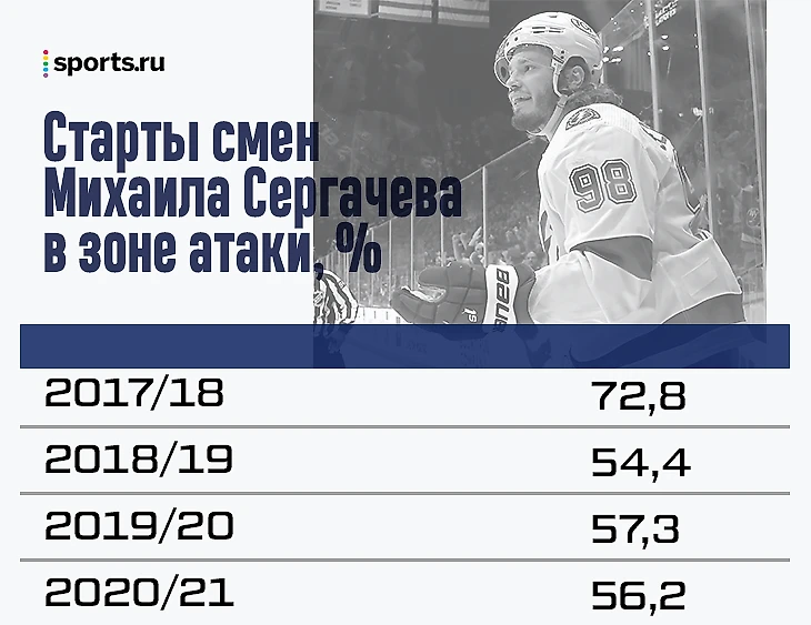 Было очень тяжело, и Купер возился с новичком – давал ему максимально легкие условия, в которых проще проявить атакующие навыки. В первом сезоне НХЛ Сергачев 72% своих смен начинал в зоне атаки, то есть в моменты, когда ему не нужно обороняться – это просто огромный показатель, даже у атакующего Хедмана в формате 5-на-5 только один раз за карьеру он поднимался выше 60%. В дебютном сезоне рядом с Сергачевым выходили опытнейшие Строльман и Джирарди, чьей основной задачей была страховка новичка в защите.