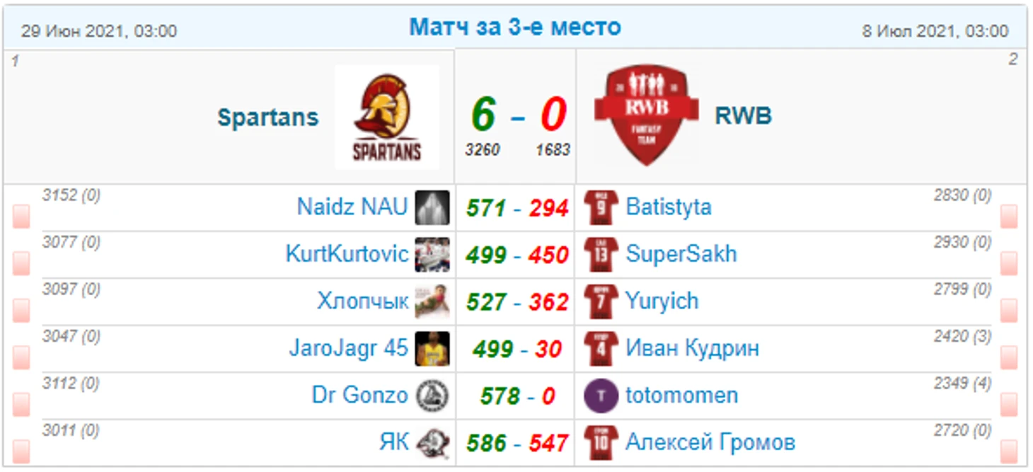 Матч за 3-е место оказался пустой формальностью - победа Spartans 6-0.
