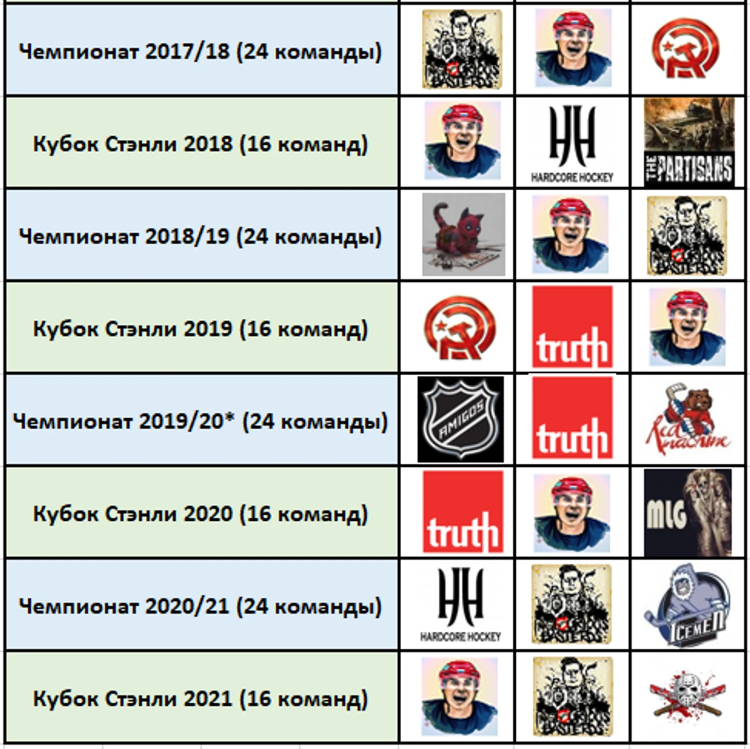 Победители и призеры предыдущих сезонов