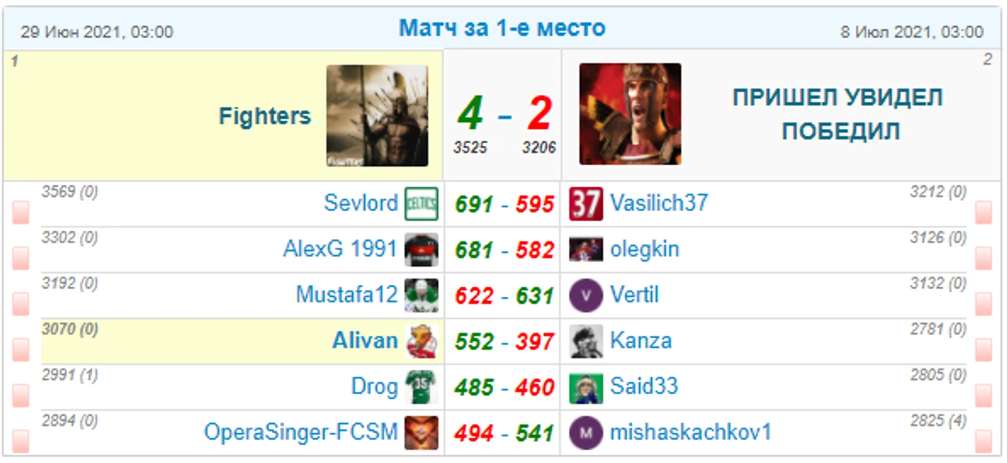 Всем участникам турнира хорошо провести лето, набраться сил и следить за блогом, к концу сентября начнем регистрироваться в турниры нового сезона.