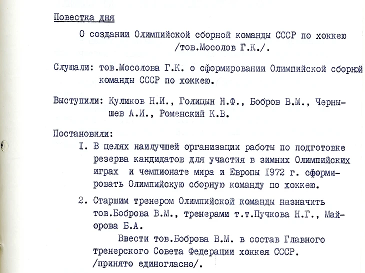 Старшим (главным) тренером сборной, а также председателем Всесоюзного тренерского совета и членом Президиума Федерации хоккея СССР был, напомню, Аркадий Иванович Чернышев, а не Тарасов.