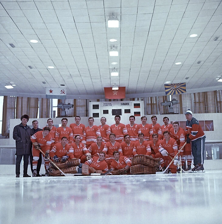 Сборная СССР в январе 1972 года. Крайний слева – Аркадий Иванович Чернышев. Крайний справа – Анатолий Владимирович Тарасов