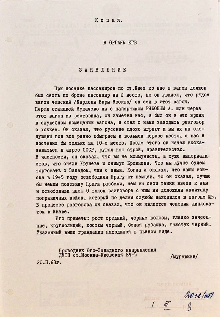 20 февраля 1968 года. Документ из архива украинского КГБ