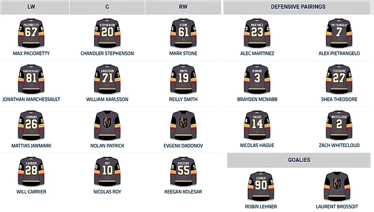 Попрощались в межсезонье и с другими «ветеранами» франшизы, игравших за клуб с его основания. Нападающие нижних звеньев Райн Ривс и Томаш Носек отправились на Восток, в обратном направлении для усиления флангов атаки перебрался Евгений Дадонов, отыгравший непривычно низкорезультативную для себя регулярку в составе Оттавы. За проведенные семь сезонов в лиге, 32-летний россиянин впервые получает возможность сыграть в сильной команде, претендующей на кубок и подобным шансом определенно стоит пользоваться, даже если поначалу из привычного топ-6 придется перебраться в третье звено.