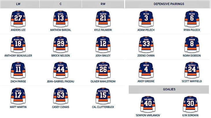 Получивший небольшую травму на предсезонке вратарь Семен Варламов может пропустить первую неделю регулярки, но его возвращение не должно затянуться, пока же в роли первого номера сыграет другой россиянин Илья Сорокин, продливший летом соглашение с клубом ($4 млн, 3 года)