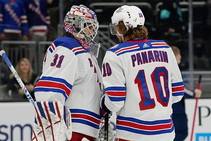 "Сиэтл Кракен"-"Нью-Йорк Рейнджерс" 1:3.Баркли Гудроу набрал 2 очка (1+1),Артемий Панарин отдал результативную передачу,Игорь Шестёркин отразил 31 бросок.