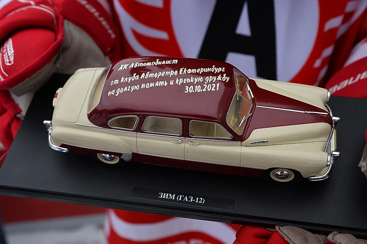 Участники «Авторетро – Екатеринбург» вручили памятный подарок любимому хоккейному клубу на крепкую дружбу и долгую память – точную уменьшенную модель автомобиля ГАЗ-12.
