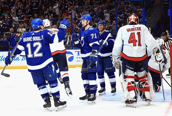 "Тампа-Бэй Лайтнинг"-"Вашингтон Кэпиталз" 3:2.Энтони Чирелли набрал 3 очка (1+2),Андрей Василевский отразил 31 бросок.У гостей Евгений Кузнецов отдал результативную передачу.