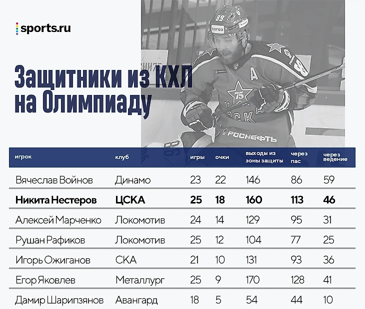 Три кандидата в 3-4 пару сборной на Олимпиаду – не так уж и плохо, но нужно понимать, что Нестеров, Марченко и Войнов – это опытные игроки, а молодых, которые дают аналогичный уровень, сейчас нет.