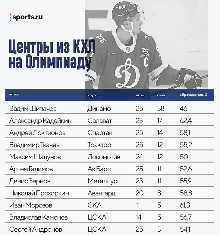 В итоге КХЛ, являясь базовой лигой для российских игроков, может помочь сборной на главном турнире четырехлетия лишь Шипачевым, ролевиками в центр и защитниками для нижних пар. И только потому, что в НХЛ игроков на эти позиции просто не хватает.