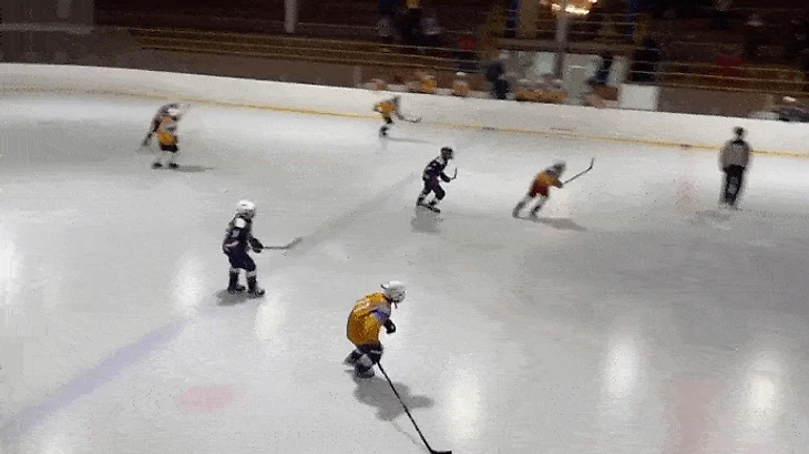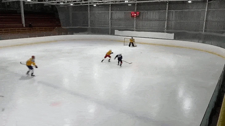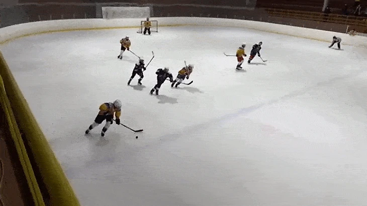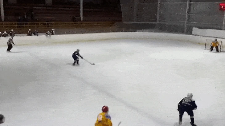 Ближе к середине периода мы успокоились, ввели в наш неспешный ритм соперников и стали чаще владеть шайбой. По-прежнему было много потерь в средней зоне что у тех, что у других, но хотя бы мы стали доводить атаки до чужих ворот. В одном из моментов Крамаров и Яковлев убегали 2 в 2, Артём открылся под оставление, но Макар предсказуемо бросил сам. Через несколько секунд уже 27 разгонял атаку 3 в 2 своего звена, но решил, что и он отдавать не будет, ковырнул в сторону ворот и был таков. А ведь рисовали. Заостряли внимание именно на таких эпизодах, и отрадно, что поддерживающие атаку ребята шли на это оставление, делали так, как надо. Не отрадно, что вплоть до середины второй игры нормально разыграть подобные выходы так никто и не решился.