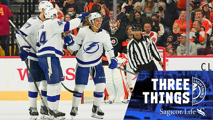 "Филадельфия Флайерс"-"Тампа-Бэй Лайтнинг" 1:7.Кори Перри набрал 3 очка (2+1),Райан Мак Донах также набрал 3 очка (1+2),Росс Колтон и Виктор Хедман отдали по 3 результативные передачи,Матье Джозеф набрал 2 очка (1+1),Брайан Эллиотт отразил 38 бросков."Молнии" выиграли 3 игру подряд.