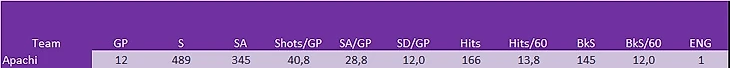 Ну а теперь к самому скучному. Или самому интересному, кому как. После выезда в Иваново у «Апачей» стало 12 сыгранных матчей, но непонятный статус «Олимпа» предполагает, что это уже не середина. Однако мы надеемся, что кто-то заставит обнинских хоккеистов доиграть турнир и воображаем, что подводим сейчас некий водораздел первой половины чемпионата. Итак, представляем вашему вниманию расширенную по всем статьям статистику СКК.