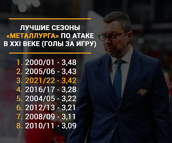 Магнитогорский «Металлург» демонстрирует лучшую игру в атаке за последние 16 лет.