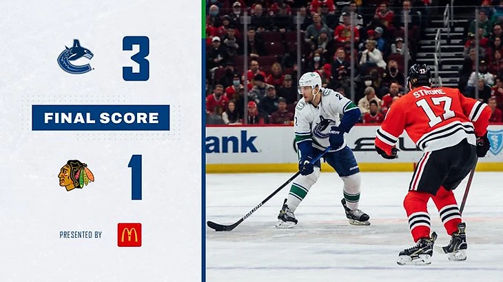 "Чикаго Блэк Хоукс"-"Ванкувер Кэнакс" 1:3.Алекс Чиассон с Броком Бозером и Люком Шенном забросили по шайбе,Ярослав Халак отразил 20 бросков.