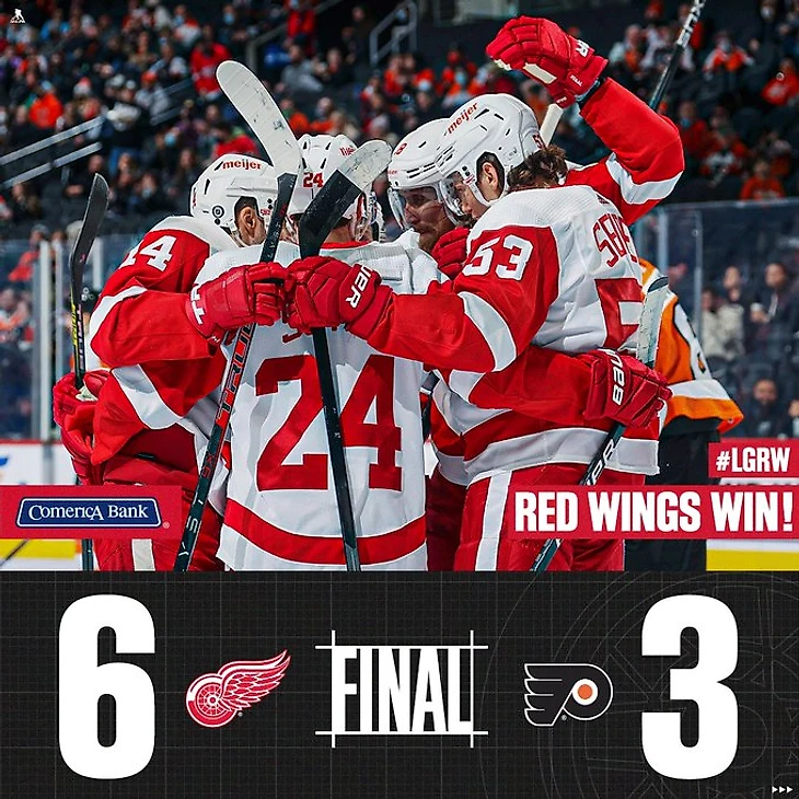 "Филадельфия Флайерс"-"Детройт Ред Уингз" 3:6.Робби Фаббри,Лукас Рэймонд,Пиус Сутер и Дилан Ларкин набрали по 2 очка (1+1),Моритц Зайдер отдал 2 результативные передачи,Владислав Наместников забросил одну шайбу,Алекс Неделькович отразил 21 бросок.У хозяев Ник Силер отдал 2 результативные передачи.