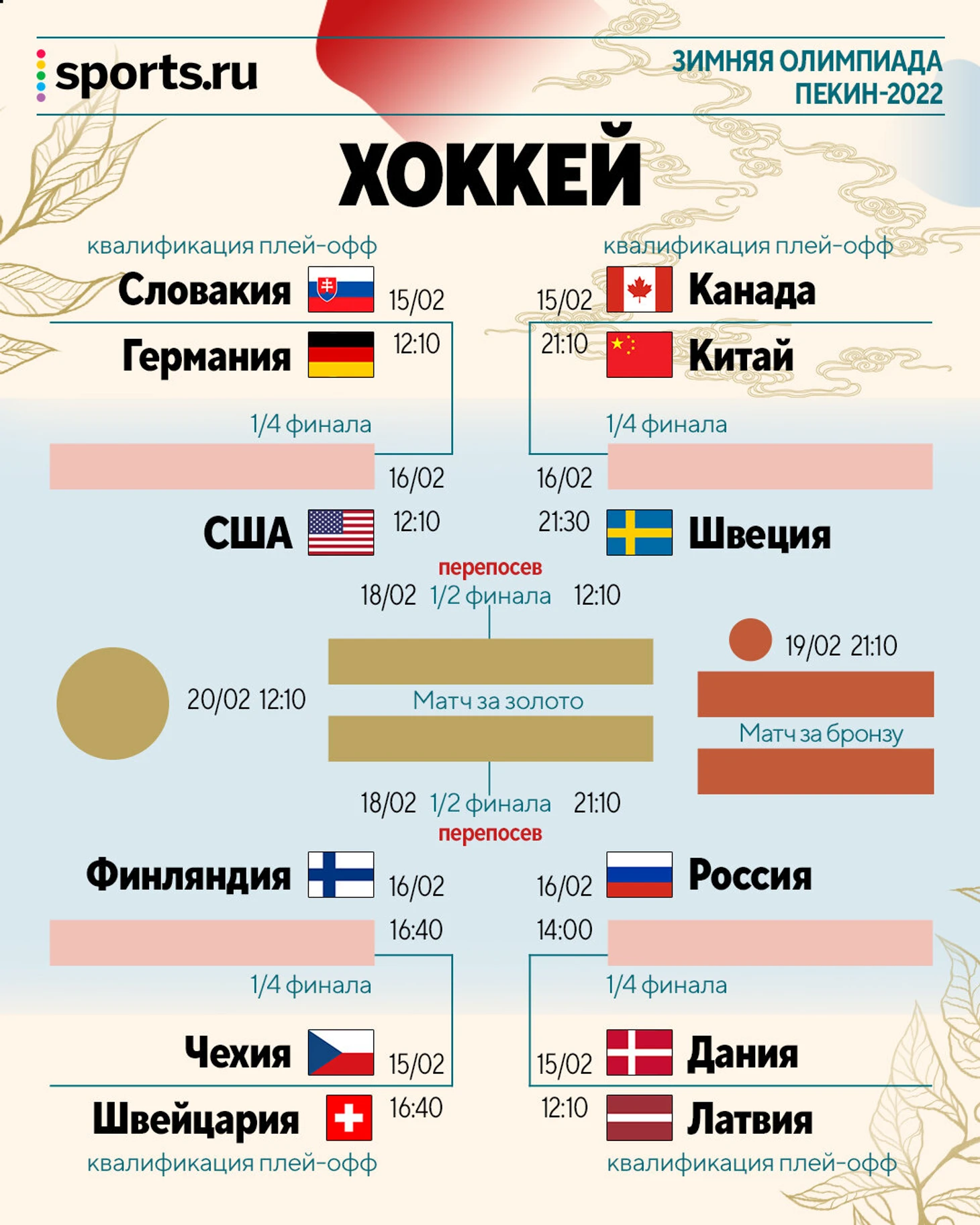 Сетка плей-офф хоккейного олимпийского турнира – участники 1/4, с кем играет Россия