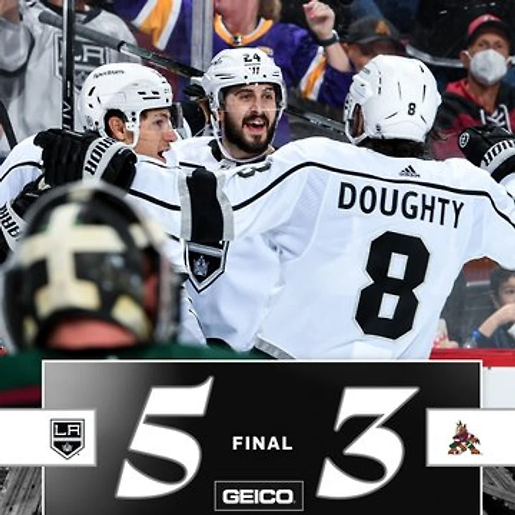 "Аризона Койотс"-"Лос-Анджелес Кингз" 3:5.Гости в третьем периоде забросили 3 шайбы.Адриан Кемпе и Дрю Даути набрали по 3 очка (2+1),Анже Копитар отдал 3 результативные передачи,Кэлвин Петерсен отразил 20 бросков.