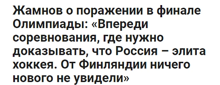 Главный тренер сборной после поражения в финале говорит, что теперь нужно доказывать свой класс в других соревнованиях, что победившая команда его ничем не удивила. Вместо слов о прошедшем турнире, о том, что было на льду - нужно доказать. Вместо теплых слов в сторону оппонента - не удивили. Что это вообще такое??