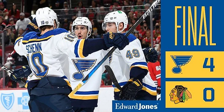 "Чикаго Блэк Хоукс"-"Сент-Луис Блюз" 0:4.Давид Перрон забросил 2 шайбы,Брейден Шенн отдал 2 результативные передачи,Павел Бучневич забросил одну шайбу,Иван Барбашев отдал результативную передачу,Джордан Биннингтон отразил 30 бросков и сыграл второй сухой матч в сезоне."Блюзмены" выиграли 4 игру подряд.