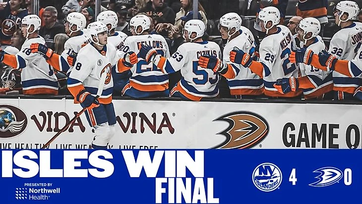 "Анахайм Дакс"-"Нью-Йорк Айлендерс" 0:4.Кейси Сизикас набрал 2 очка (1+1),Росс Джонстон отдал 2 результативные передачи,Илья Сорокин отразил 34 броска и сыграл 5 сухую игру в сезоне.