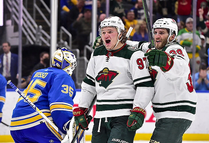 И это будет очень интересная пара – прежде всего, для российского болельщика. Во-первых, здесь сразу 5 русских игроков – в «Блюз» выдают лучшие сезоны в карьере Павел Бучневич, Иван Барбашев и Владимир Тарасенко, в «Миннесоте» же играют Кирилл Капризов и Дмитрий Куликов.