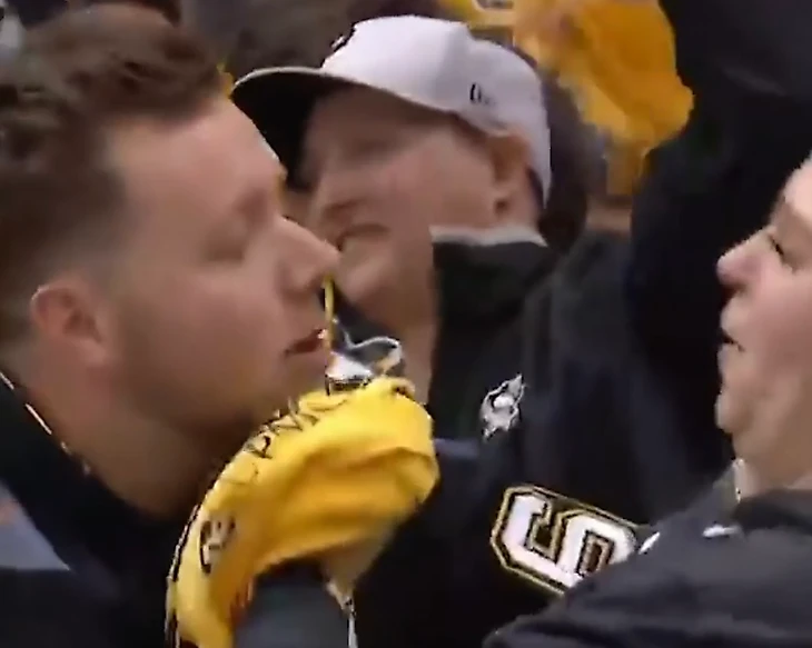 Пару дней назад во время матча «Питтсбурга» с «Рейнджерс» зритель на трибуне попытался поцеловать подругу, а она его ототкнула. Этот момент попал в трансляцию и завирусился в сети.