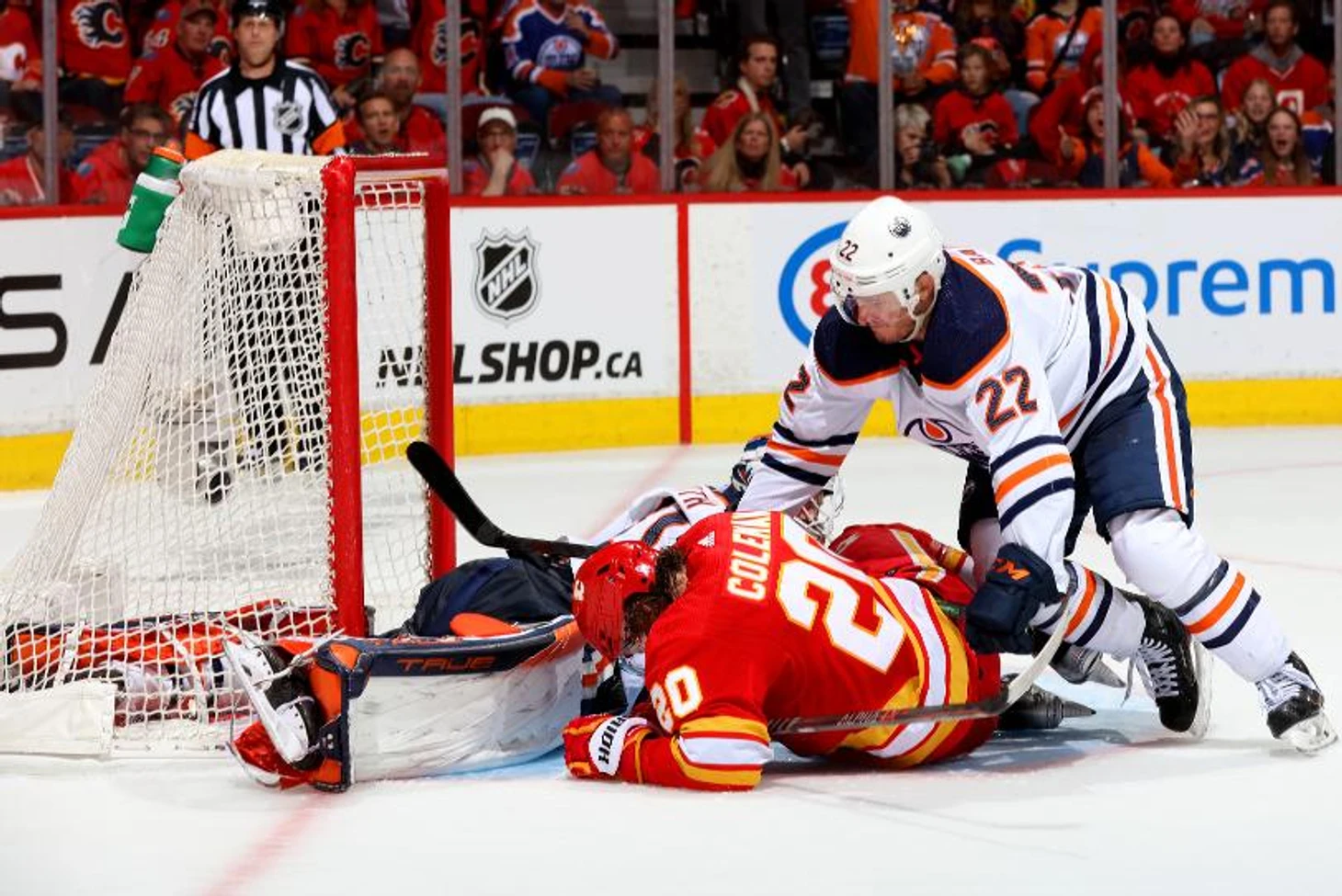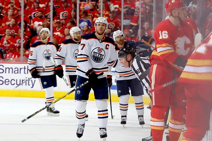 Макдэвид и судьи вытащили Ойлерз, но Флэймз проиграли сами. Второй матч серии остался за Эдмонтоном